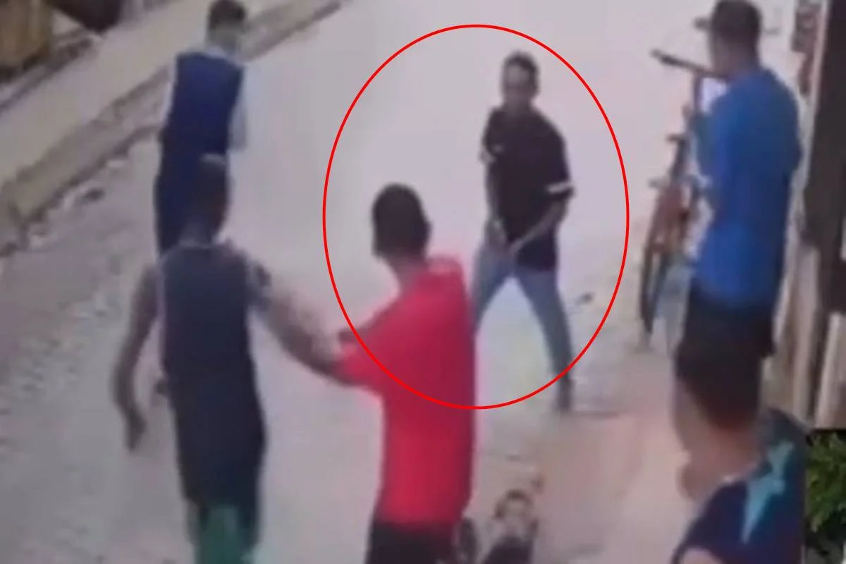 • As imagens de uma câmera de segurança registraram o momento em que o menor infrator se aproxima de um grupo de jovens e inicia-se uma discussão;