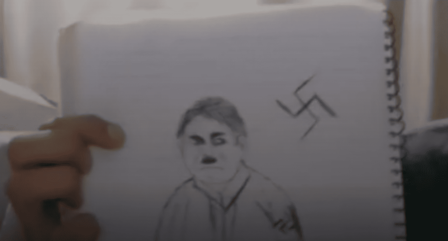 Em determinado momento, os jovens aparecem rindo após mostrarem uma caricatura de Adolf Hitler desenhada em um caderno. Em um áudio obtido pela reportagem, o adolescente fala em espanhol e diz que é filho do ex-ditador nazista.
