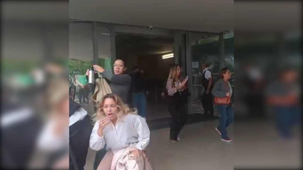 Um vídeo obtido pelo Metrópoles mostra o momento em que dezenas de pessoas saem do prédio em meio a muita fumaça. Nas imagens, é possível observar que o grupo está tossindo, alguns com a roupa cobrindo boca e nariz, além de outros que correm por medo do incêndio.