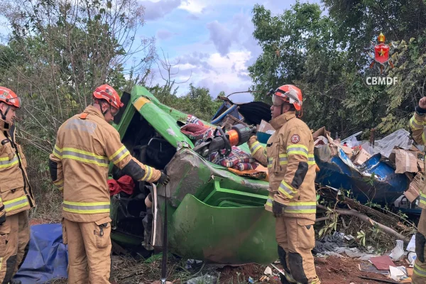 Caminhão de mudança tomba no Jardim Botânico e motorista fica preso às ferragens
