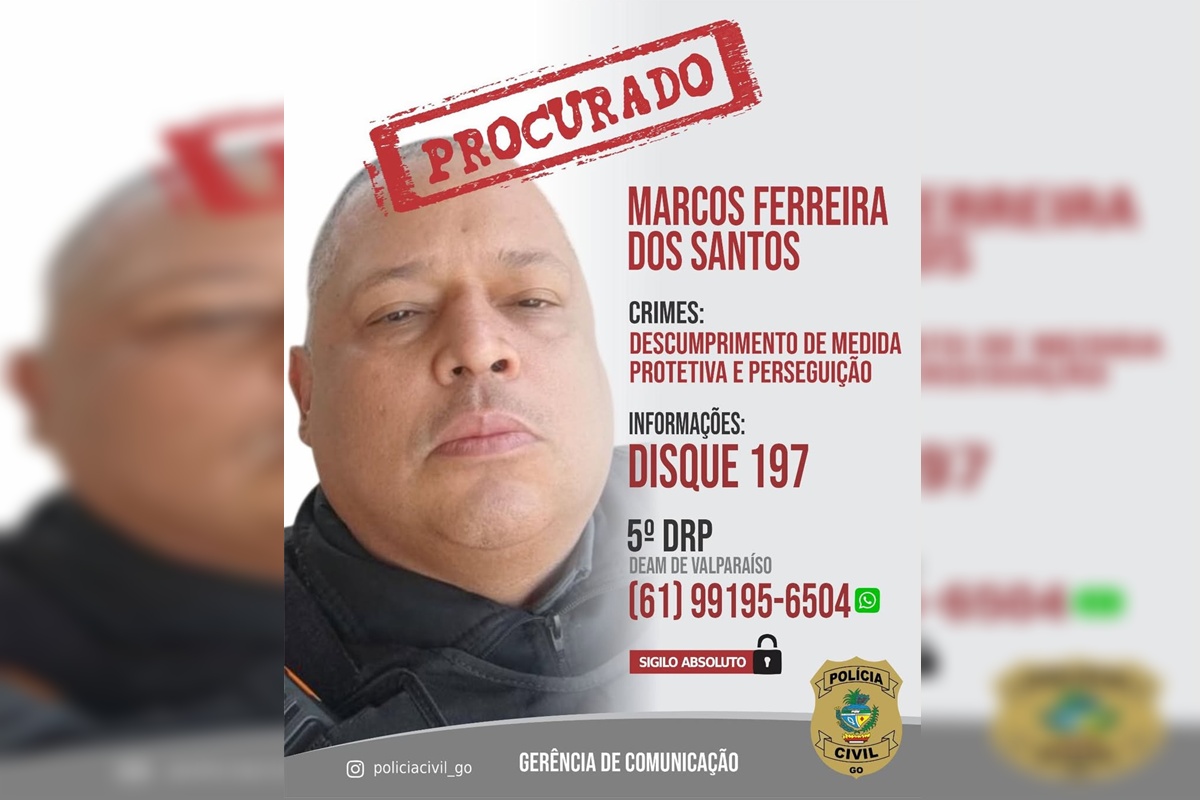 Marcos Ferreira dos Santos, 47 anos, está foragido pelos crimes de perseguição e descumprimento de medida protetiva
