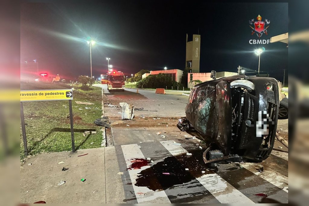 O Corpo de Bombeiros Militar do Distrito Federal (CBMDF) atendeu a ocorrência por volta das 3h43 e mobilizou quatro viaturas. Com o impacto, o poste caiu e o veículo saiu da pista.