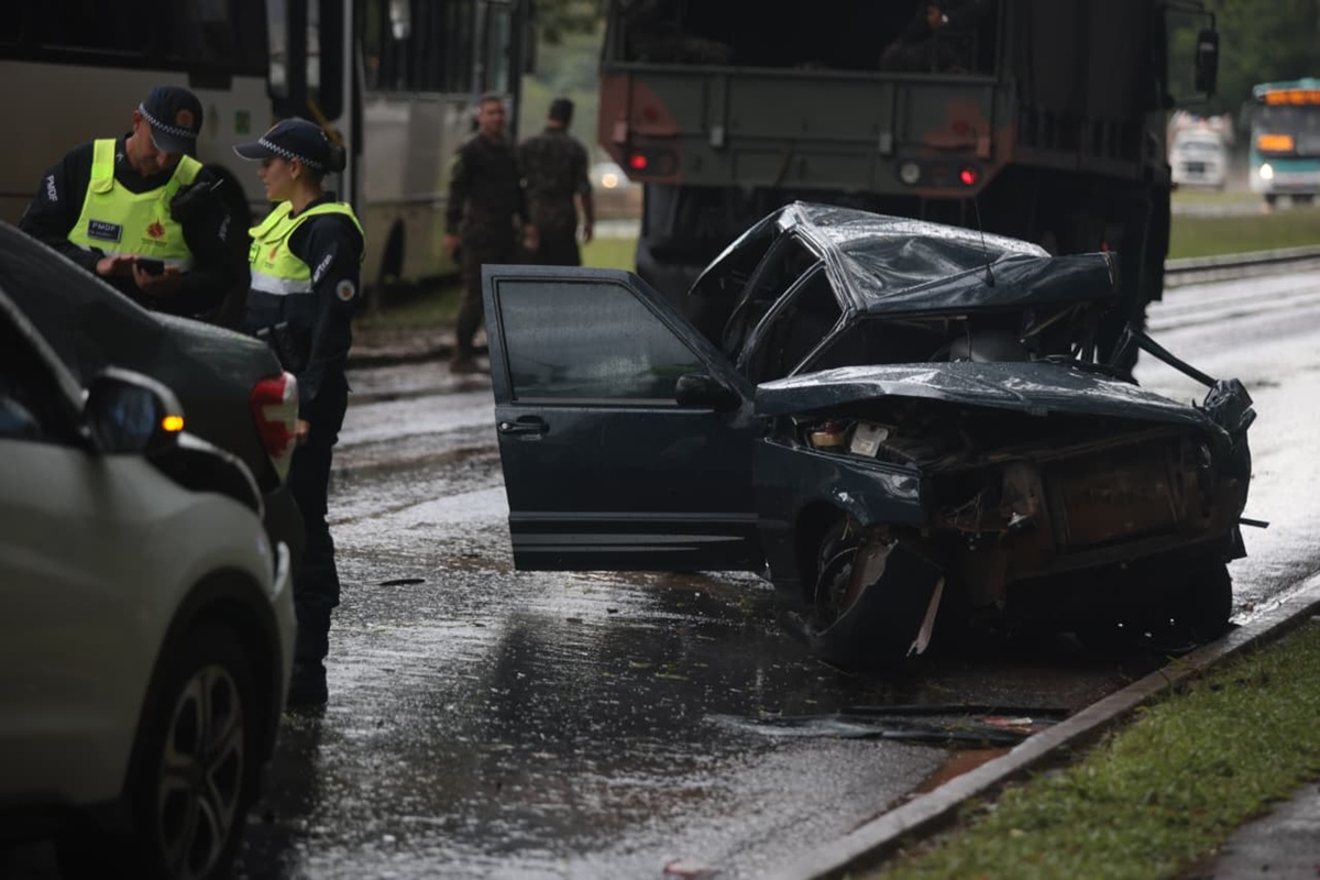 Acidente entre três veículos foi registrado na manhã desta sexta-feira (20/2). Uma motorista ficou gravamente ferida