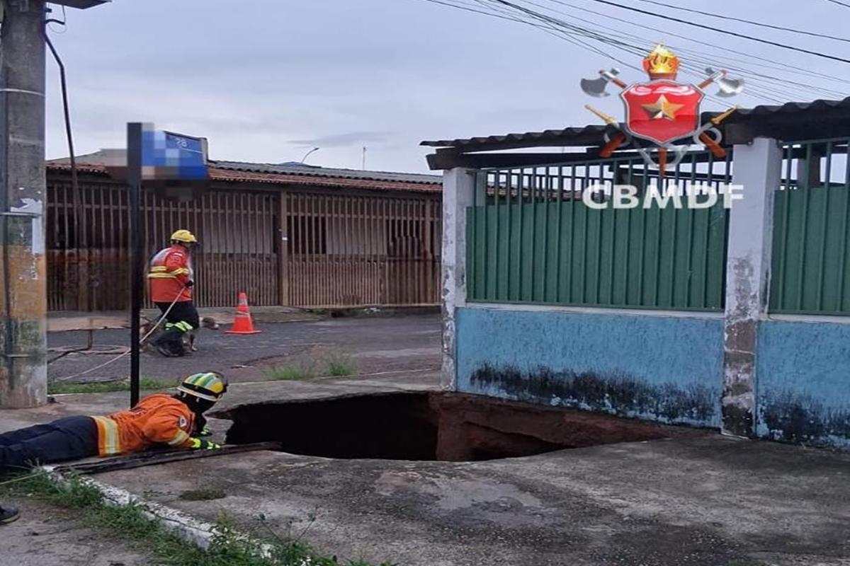 A Caesb informou que a rede de esgoto cedeu e causou a abertura da cratera.