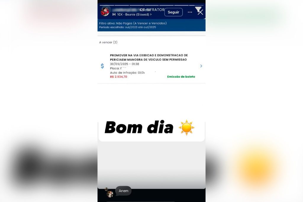 O motorista e influencer que publicou nas redes sociais um vídeo dirigindo um Chevette em apenas duas rodas durante a madrugada de segunda-feira (29/9), no túnel do Pelé, recebeu multa de R$ 2.934,70. A informação foi divulgada por ele mesmo via stories do Instagram.
