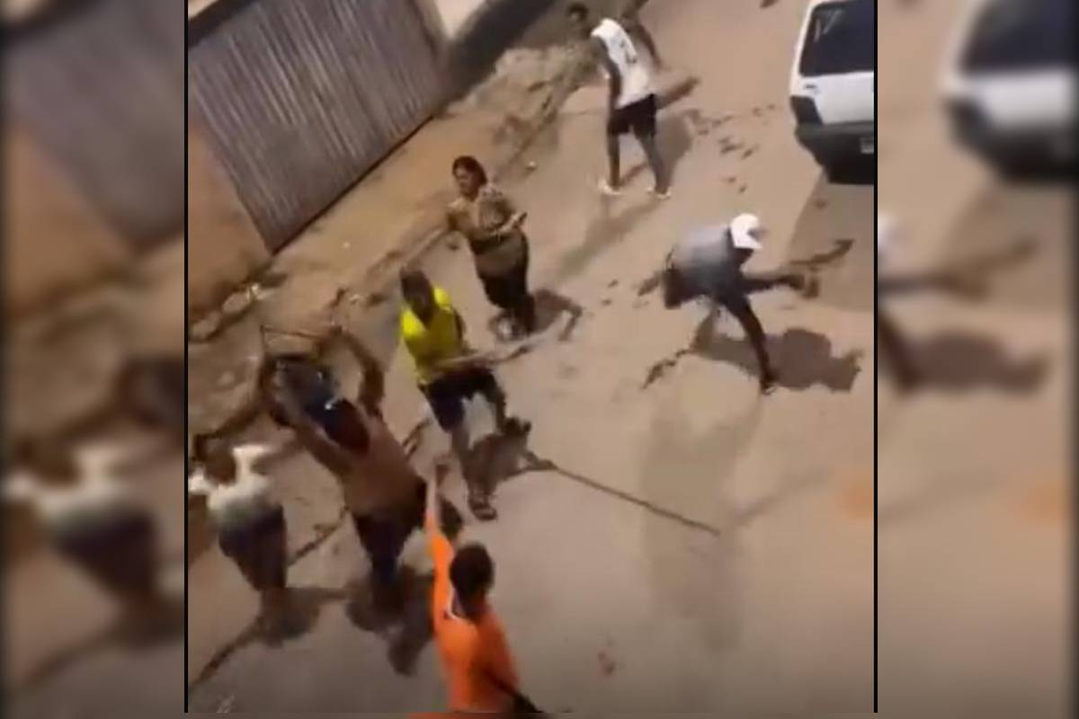 Churrasqueira e facão: homem é espancado por 5 pessoas no meio da rua