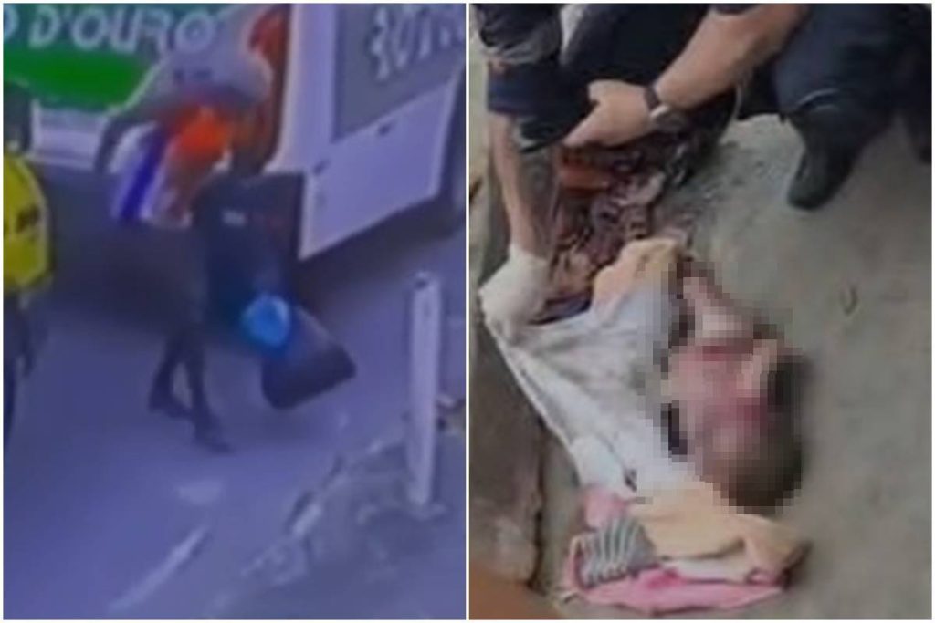 Imagens de câmeras de segurança registram o momento em que um homem, supostamente usuário de drogas, descarta uma sacola de lixo contendo o corpo de uma menina [recém-nascida] na rua em São João de Meriti, Baixada Fluminense (RJ), na terça-feira (25/11).