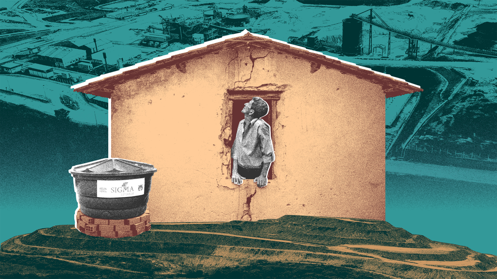 “Eu quero sair, mas eu não tenho condição, nem de consertar minha casa e nem de comprar outra. Só tenho se eles pagarem, porque foram eles que quebraram minha casa. Eu tenho medo que ela caia em cima da gente de noite”, relata a também aposentada Maria de Fátima, conhecida como Dona Fatinha. Sua mãe, que morava na residência mais próxima da pilha de estéril da Sigma, a menos de 100 metros, morreu no início de 2025 aos 94 anos, após contrair uma pneumonia que a família relaciona à poeira da mineradora.