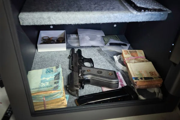 As equipes cumpriram dois mandatos de prisão e três de busca e apreensão. Foram apreendidos celulares, notebooks, pendrives, e uma pistola calibre 380 que estava com a documentação irregular, fato esse que resultou na prisão em flagrante do proprietário do revólver