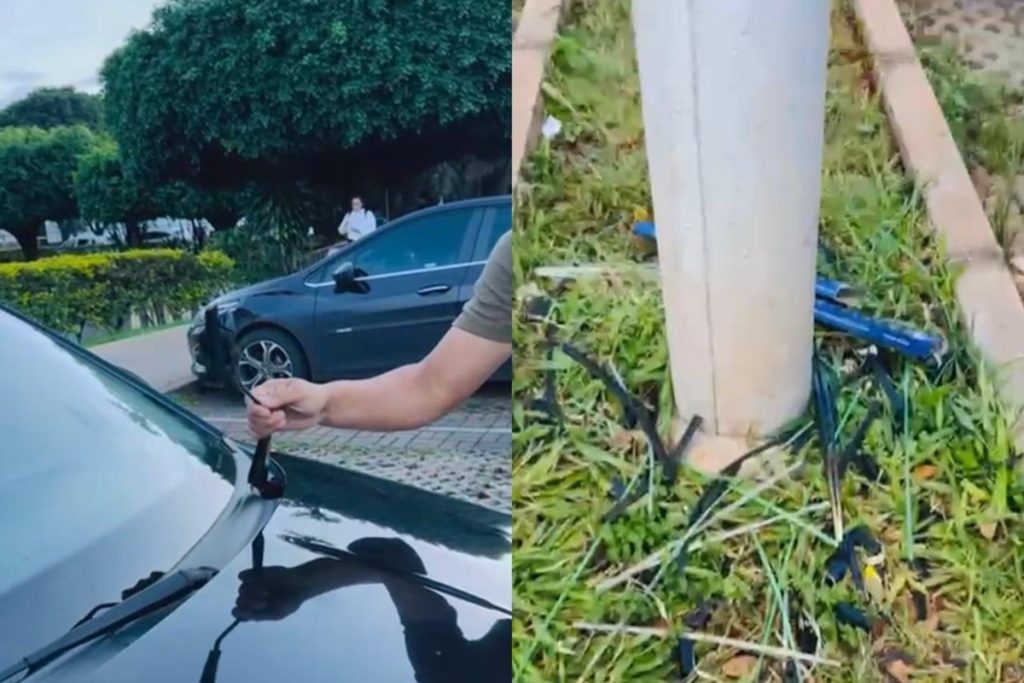 Homem acusa flanelinhas de arrancarem palhetas de carro no DF. Veja vídeo