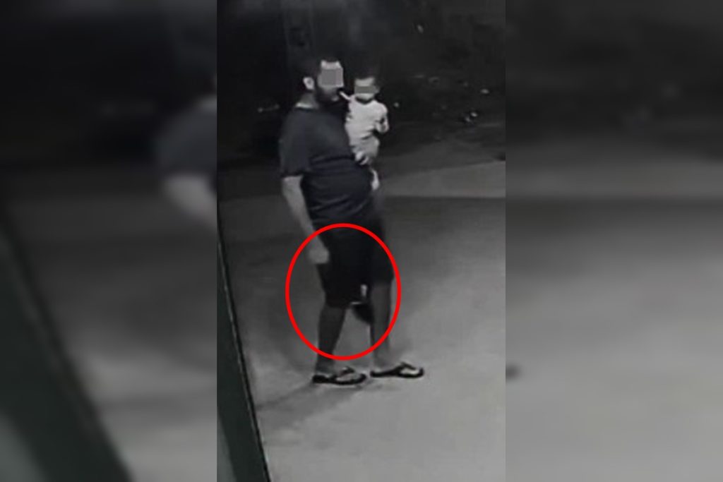 Imagens de uma câmera de segurança mostram o agressor segurando a criança e dizendo que ia matá-lo com um machado