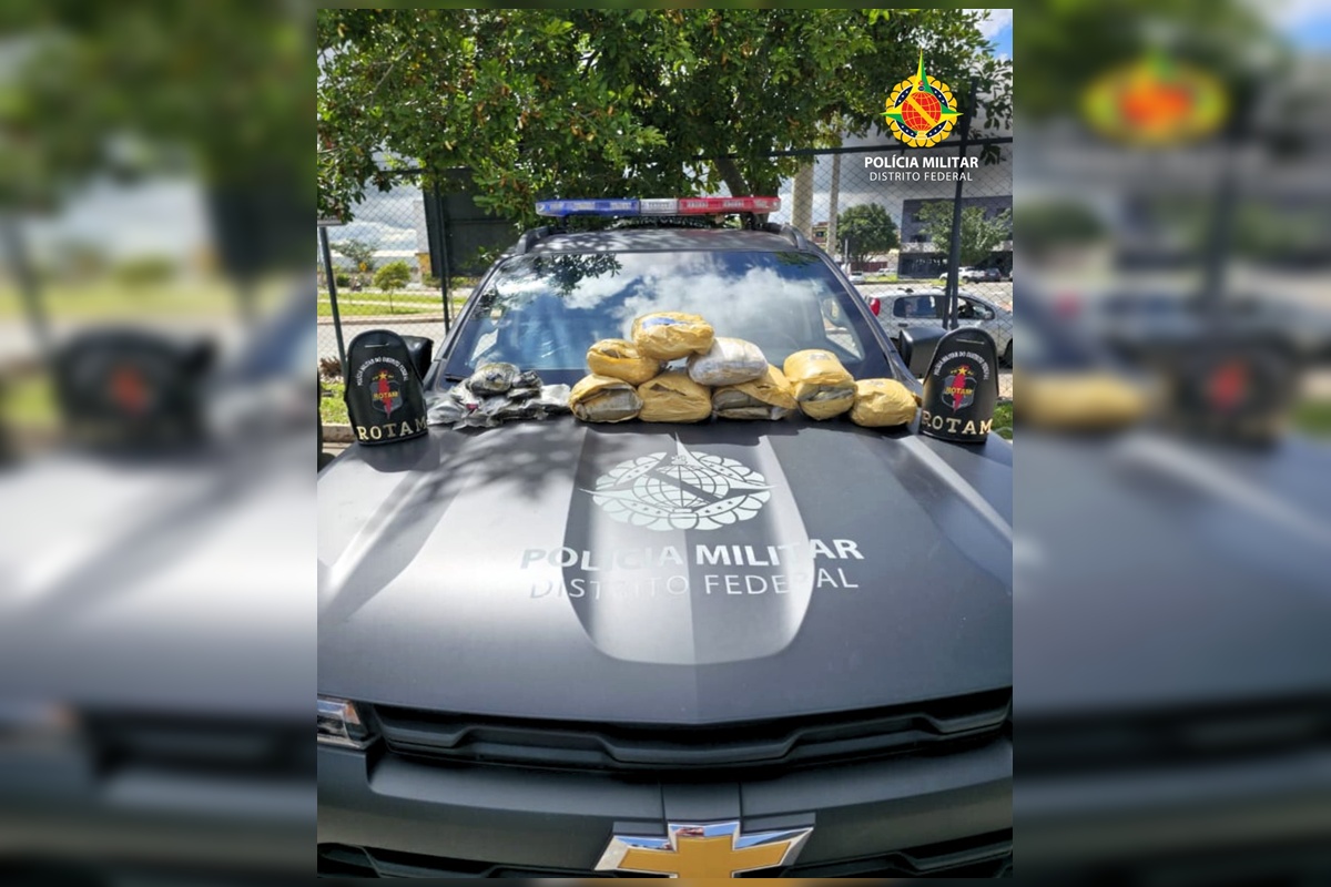 Ação da PMDF resultou na apreensão de oito peças de skunk e 12 placas de haxixe; suspeito foi preso em flagrante