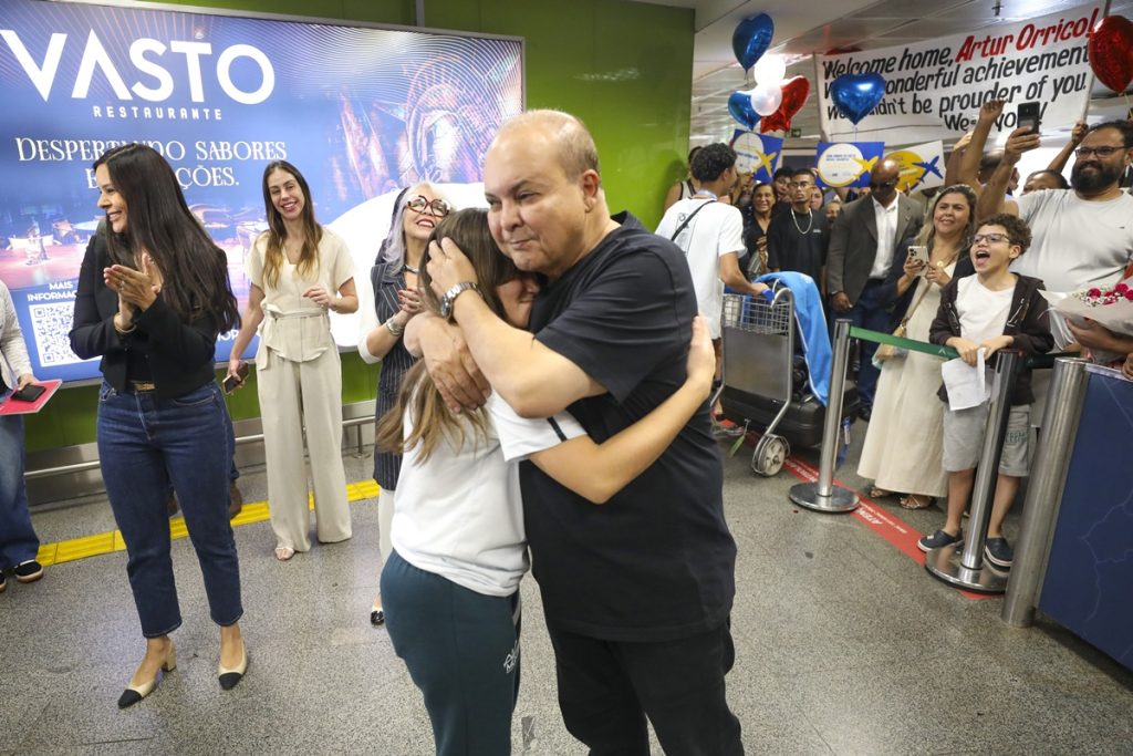 Lavínia Vieira Nascimento, de 17 anos, foi acolhida de volta com um abraço longo e demorado da mãe, a professora Daniela Santos Vieira, de 48 anos. Entre sorrisos e lágrimas, elas começaram a matar as saudades.