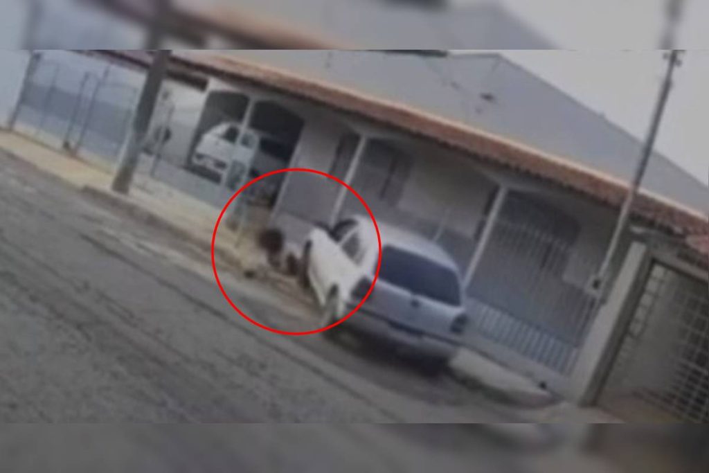 O motorista jogou o veículo contra o portão, atingindo a mulher, que foi arremessada ao chão. O homem ainda tenta passar por cima dela. A vítima consegue se levantar e entrar na residência em busca de abrigo.