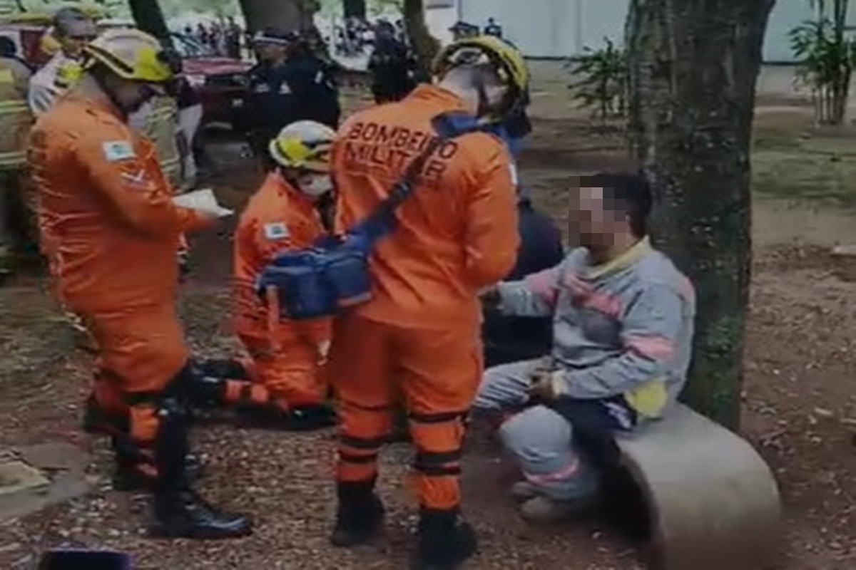No vídeo é possível ver pessoas com dificuldades de respirar e sendo atendidas. Um homem com roupa da Companhia Energética de Brasília (CEB) é visto recebendo atendimento na mão.
