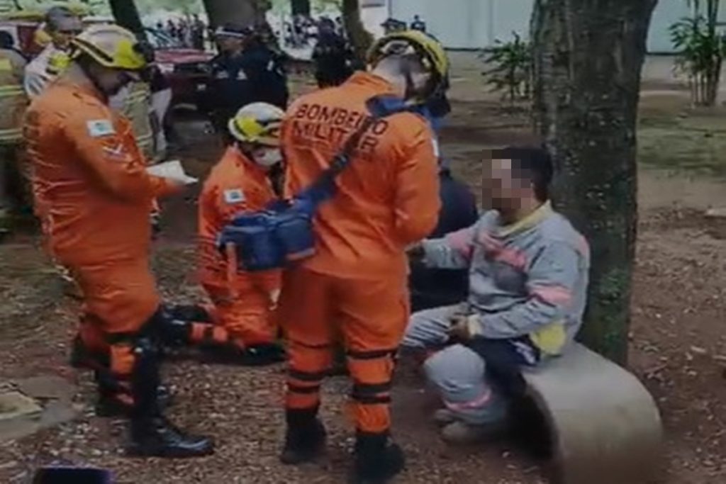 No vídeo é possível ver pessoas com dificuldades de respirar e sendo atendidas. Um homem com roupa da Companhia Energética de Brasília (CEB) é visto recebendo atendimento na mão.