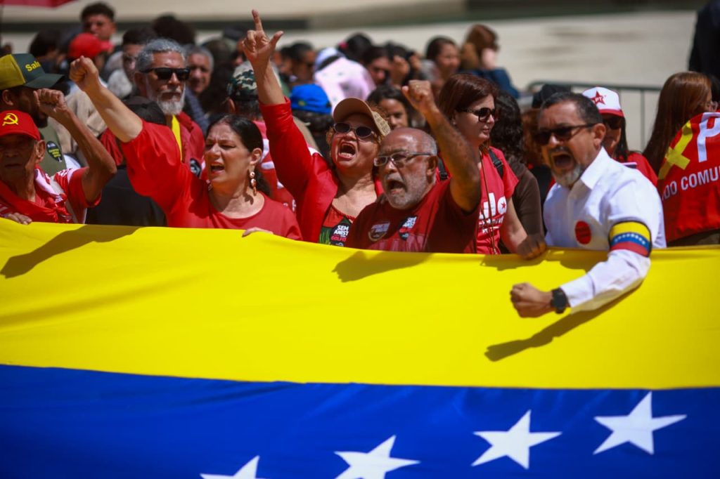Manifestantes levam bandeira da Venezuela em ato do 8/1: “Fora Trump”. Veja vídeo
