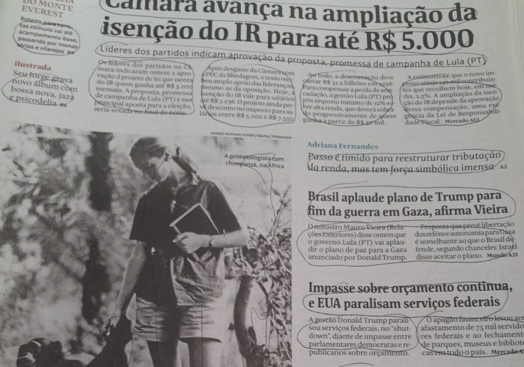 Assim como meu pai, quando ainda hoje circula cada parágrafo do seu jornal, com canetas coloridas.