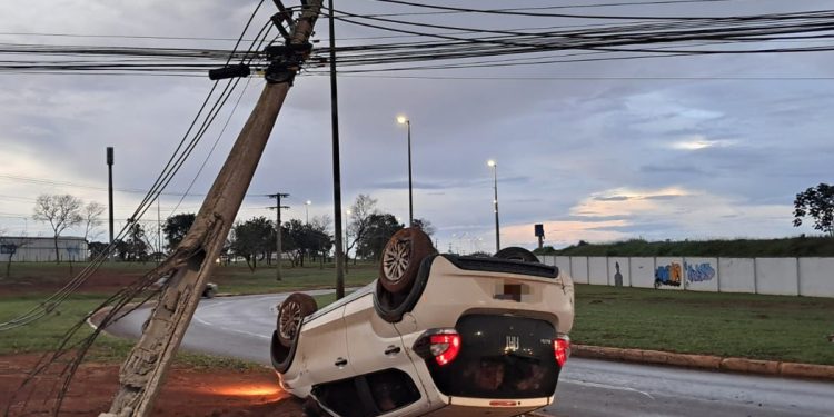Motorista capota carro e derruba poste próximo ao Autódromo de Brasília
