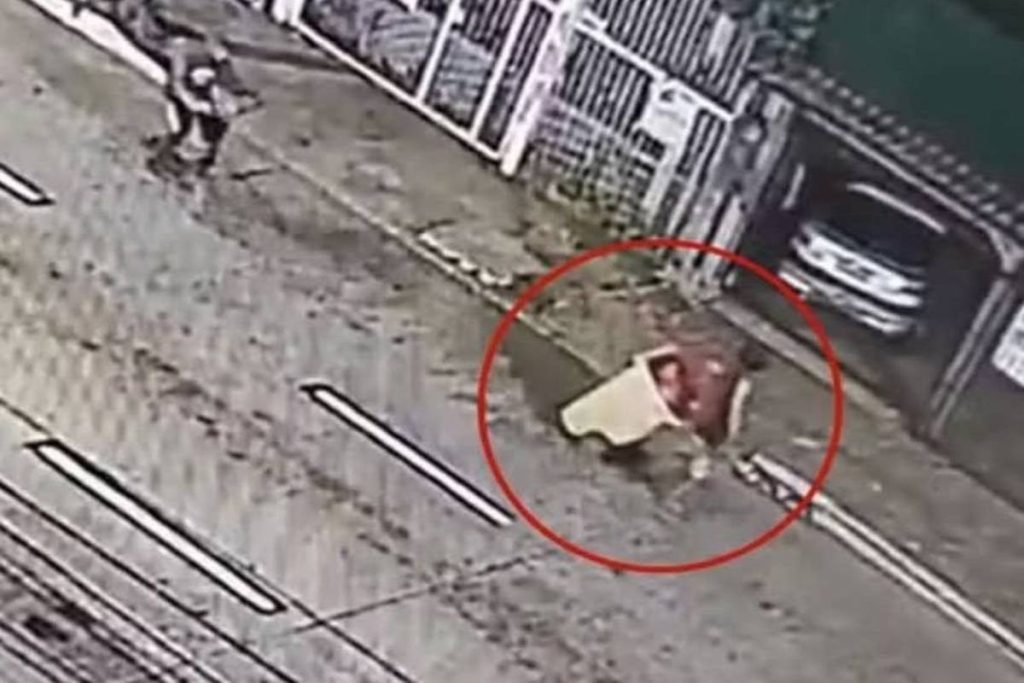 Segundo policiais que tiveram acesso às câmeras, as imagens mostram parte da ação de dois homens. Um deles empurra a lixeira com o corpo dentro, e o outro o acompanha em uma bicicleta.
