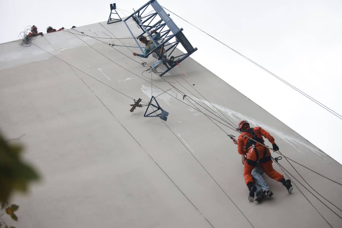Os dois trabalhadores realizavam o serviço de pintura do prédio quando uma das cordas do andaime arrebentou em um dos suportes fixados no terraço do bloco. Ambos usavam os equipamentos de proteção individual (EPIs), o que foi fundamental para que saíssem ilesos.
