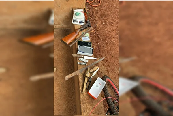 Durante o cumprimento dos mandados, os policiais apreenderam uma espingarda, uma balança de precisão, um rolo de filme PVC cortado, porção de substância semelhante a maconha e aparelhos celulares, entre os quais um telefone pertencente à vítima do roubo em Água Fria.
