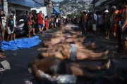 Imagens mostram um carro abarrotado de cadáveres, e pessoas tentando cobrir os mortos com panos. Os corpos foram enfileirados na Praça São Lucas, na Penha.