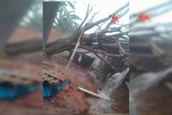Ao chegar no local, a equipe, na tentativa de gerenciar os riscos causados pela queda, isolou a área e iniciou o corte para retirar os galhos do telhado. Devido à grande quantidade de chuva que caía no momento, o corte não foi finalizado imediatamente e será concluído posteriormente.