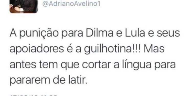 Em uma das mais polêmicas publicações,  datada de 17 de março de 2016, Avelino escreveu: “A punição para Dilma e Lula e seus apoiadores é a guilhotina!!! Mas antes tem que cortar a língua para pararem de latir”. Na ocasião, referia-se à posse do ex-presidente Lula como ministro da Casa Civil, em meio a uma tentativa de evitar seu impeachment.