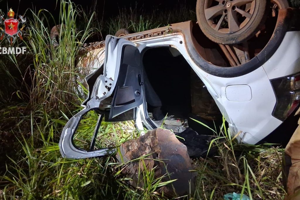 Veículo capota e deixa três pessoas feridas na BR-020