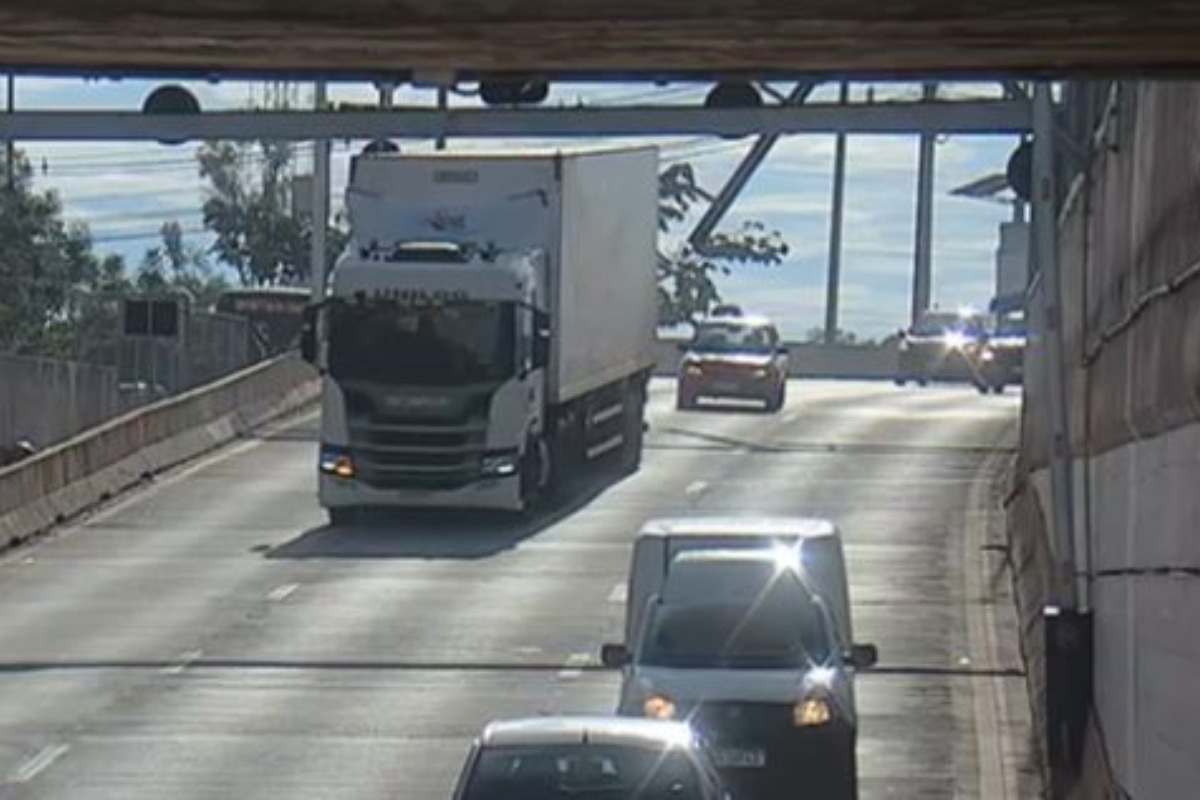 Veja momento em caminhão atinge e derruba estrutura no Túnel Rei Pelé. Veja vídeo