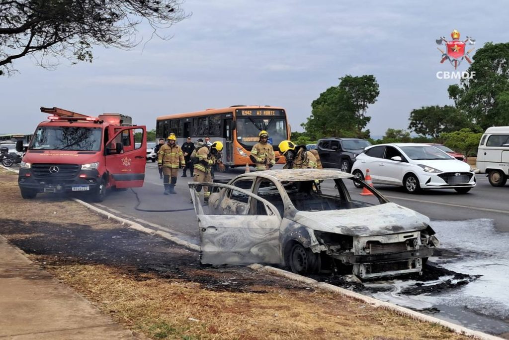Um carro pegou fogo em frente ao Memorial JK, no Eixo Monumental, na manhã desta quinta-feira (16/10). Ninguém ficou ferido.