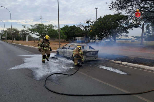 Motorista queima os dedos de uma das mãos após carro pegar fogo no DF