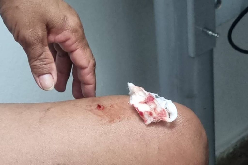 “Os macacos furaram dois coolers tentando abrir, o pessoal que fica na vigilância apitou e eles saíram. Fomos até onde estavam nossas coisas, minha mãe ficou com minha sobrinha embaixo da árvore. Dois dos bichos foram para onde minha mãe estava, gritamos para ela sair já que um dos macacos estava nas costas dela e ela não viu. Quando de repente ele desceu em direção a minha mãe que não deu tempo de se levantar por ser de idade já, aí o animal atacou e mordeu a coxa dela”, afirmou Leidiana.