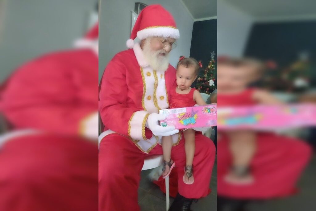 Quase completando um ano da cirurgia que permitiu a Valentina sobreviver, Laiane comemorou o Natal que pôde ter com a família. “Senti uma emoção muito grande que até chorei no momento ao ver minha filha no colo do Papai Noel. Vi a alegria no olhar dela e, ao mesmo tempo, o olhar de espanto”, ressalta a mãe.