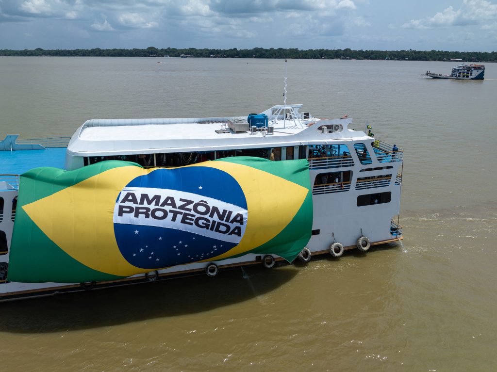 Eles participavam da barqueata, uma manifestação com mais de 200 embarcações que navegaram pela Baía do Guajará, na manhã desta quarta-feira, 12 de novembro, para que os olhos do mundo se dirijam não só para a floresta, mas também para os rios que compõem a Amazônia.