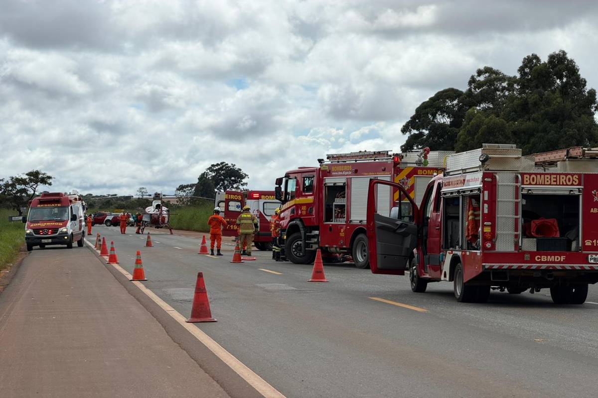 Equipes do Corpo de Bombeiros do DF realizaram o resgate dos quatro feridos, que estavam em dois carros. O acidente ocorreu nesta quarta