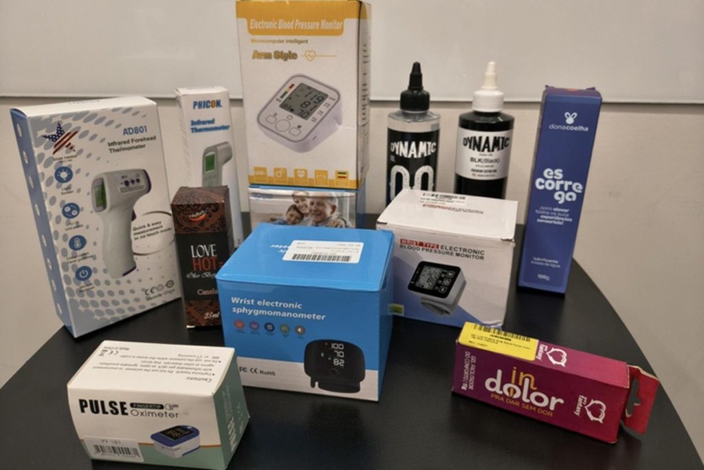 Fiscalização em centro logístico em SP encontrou itens sem registro e anúncios irregulares, incluindo dispositivos de saúde e suplementos
