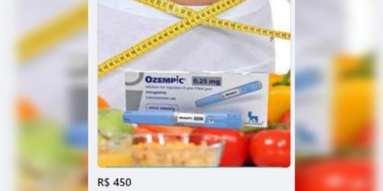 Este não é o primeiro caso de falso Ozempic. Vendas on-line do medicamento em redes sociais o oferecem com preços muito inferiores e não devem ser comprados.