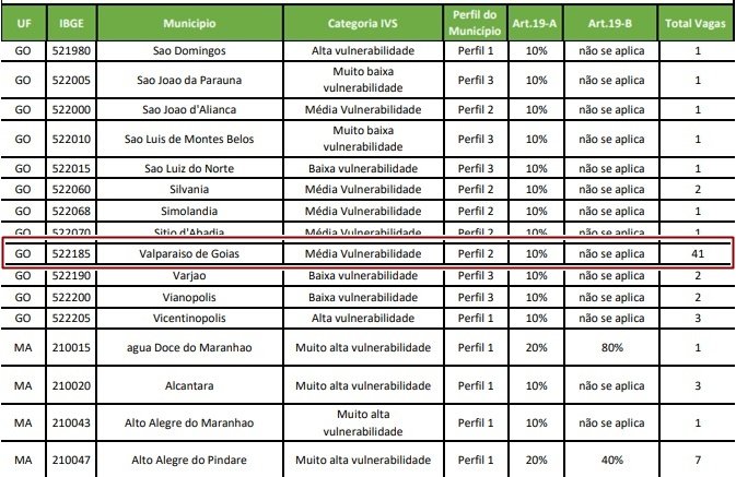 Dada a situação, para não haver prejuízos aos profissionais de saúde que participaram da seleção, o Ministério da Saúde irá realocar os médicos não validados por Valparaíso em outros municípios da região. A Pasta orienta que os profissionais confirmem a vaga no Sistema de Gerenciamento de Programas (SGP) e aguardem o contato para realização do procedimento de realocação, que deverá ocorrer nos próximos dias.