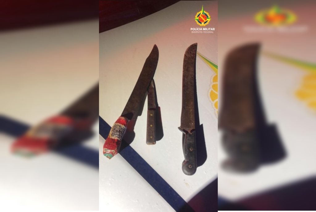 Policiais militares prenderam em flagrante um homem de 31 anos que ameaçou os próprios familiares com um facão. A prisão ocorreu na noite de sábado (22/11), no Núcleo Rural Ponte Alta, no Gama (DF).