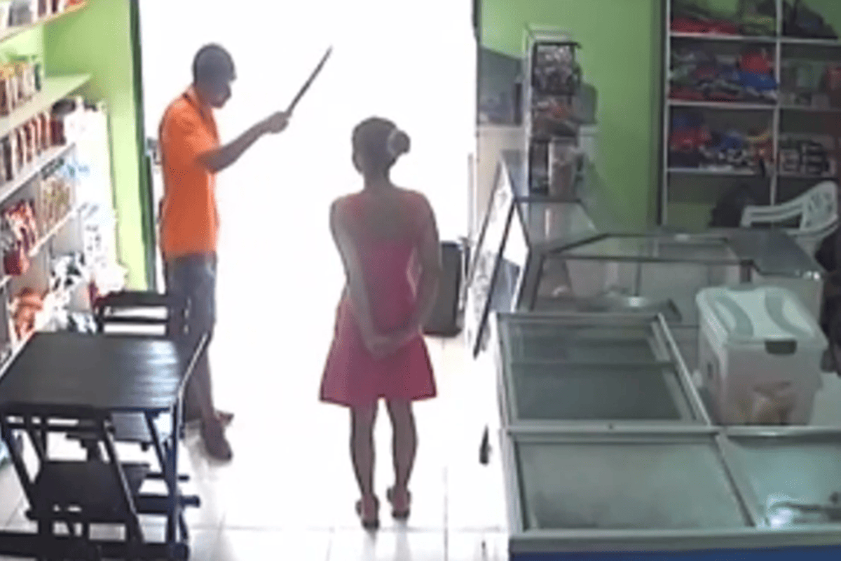 Suspeito foi flagrado por câmeras de segurança roubando uma padaria; o homem já era conhecido na região pelos assaltos com facão