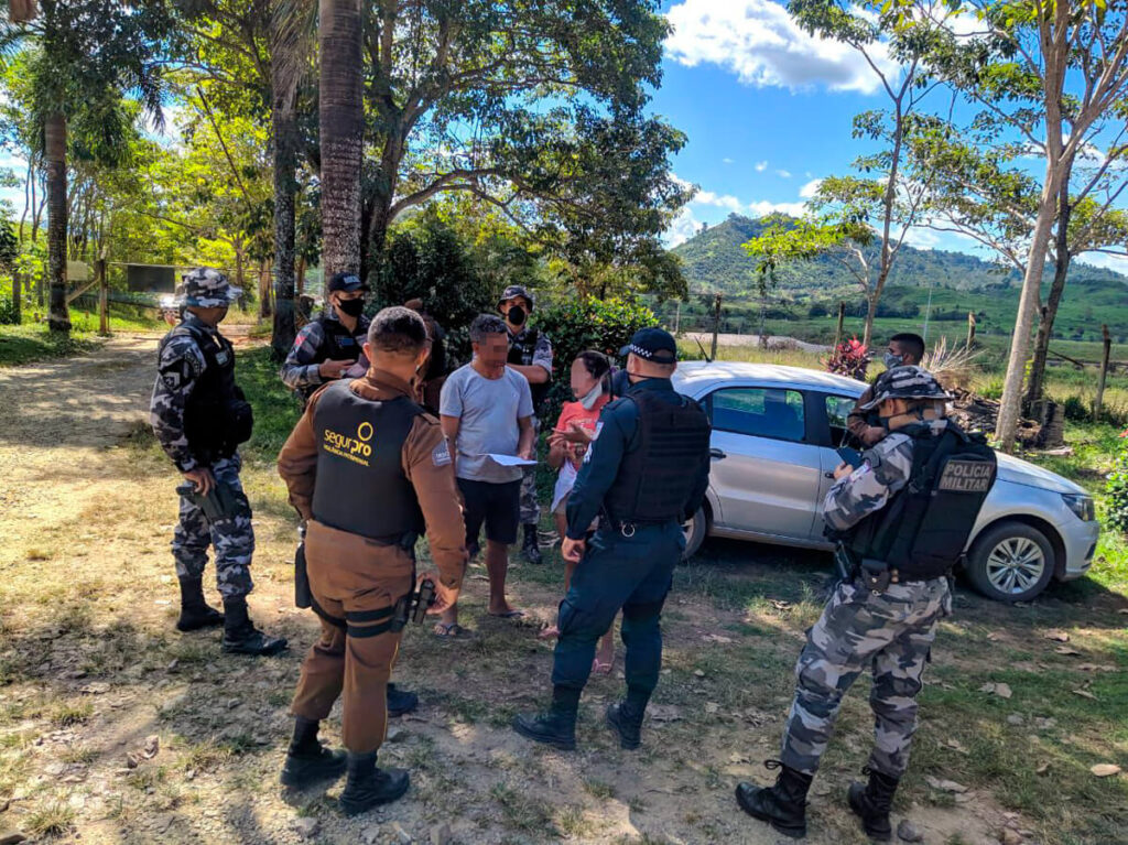 Em outro registro é possível ver cinco homens armados com escopetas, revólveres e armamentos não letais, como bombas de gás lacrimogêneo e spray de pimenta, usando blusas camufladas, câmeras corporais e coletes com o emblema da SegurPro, invadindo uma casa. Não é possível dizer, porém, se a intimidação teve como alvos agricultores ou garimpeiros, dada a penetração do garimpo ilegal em meio à comunidade.