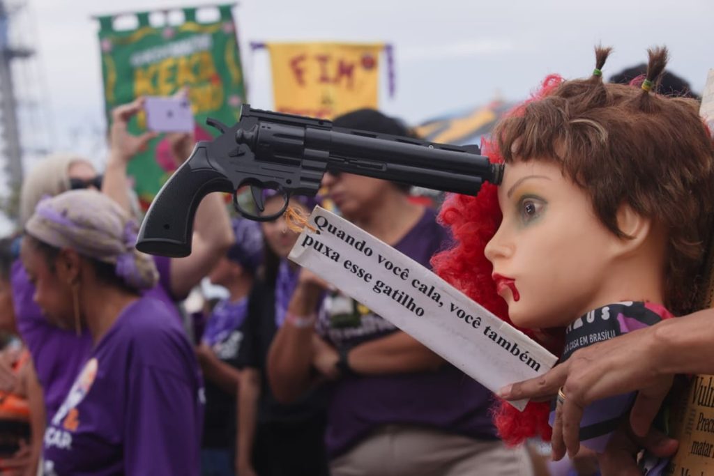 Ato contra feminicídio no DF tem encenação simbólica como alerta