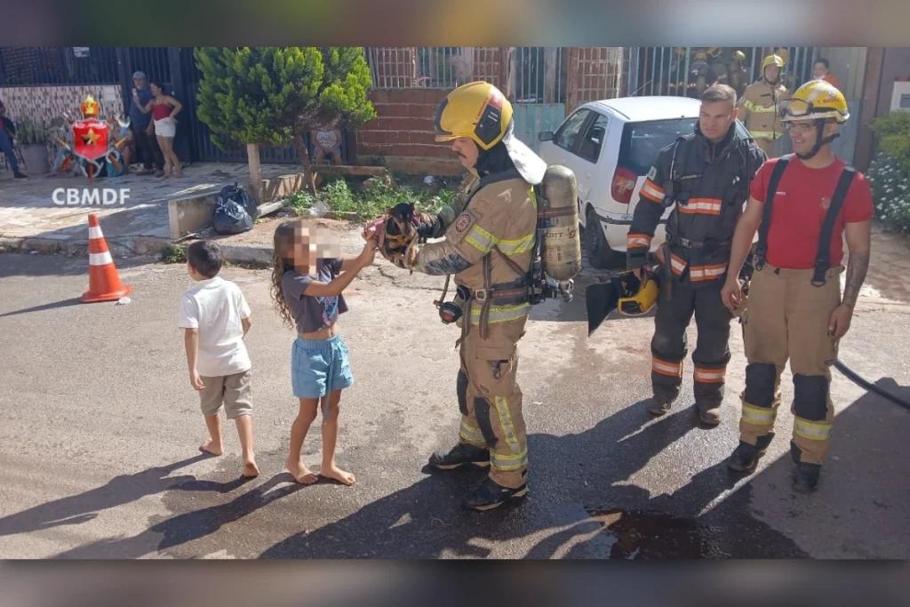 Um cachorro de pequeno porte foi resgatado pelo Corpo de Bombeiros Militar do Distrito Federal (CBMDF) de um incêndio a uma residência na QR 303, conjunto 13 de Samambaia (DF), na manhã de Natal (25/12). Os moradores da casa conseguiram sair antes que as chamas se alastrassem e o cachorro foi resgatado sem ferimentos.