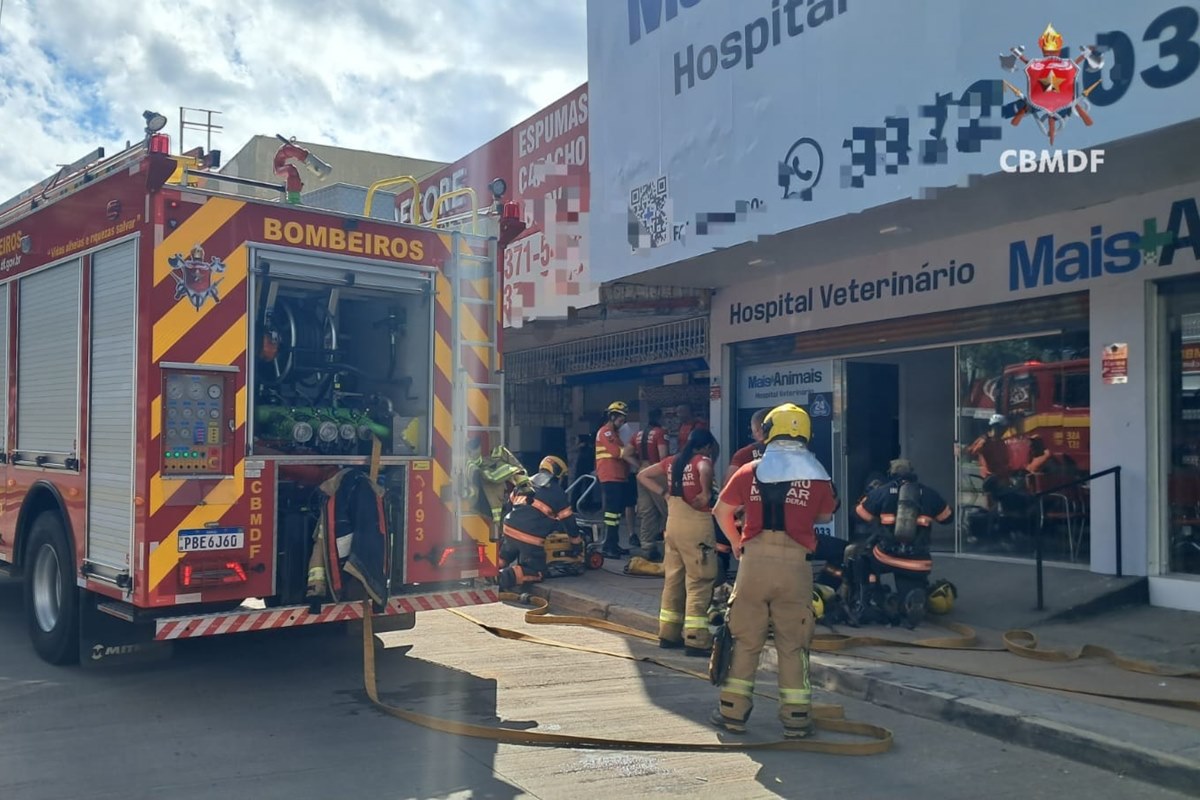 Cães, gatos e coelho são resgatados de clínica veterinária em chamas no DF. Veja vídeo