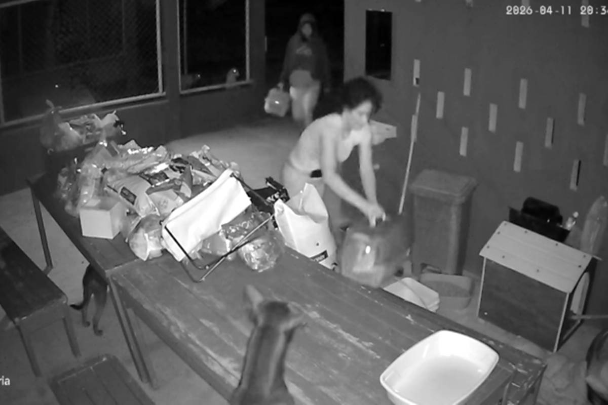 Na gravação é possível ver as mulheres entrando no abrigo, deixando as caixas com os gatos em meio a cães soltos e indo embora