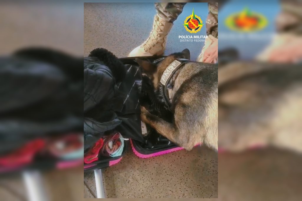 Cão farejador encontra mala com drogas avaliadas em R$ 100 mil no DF