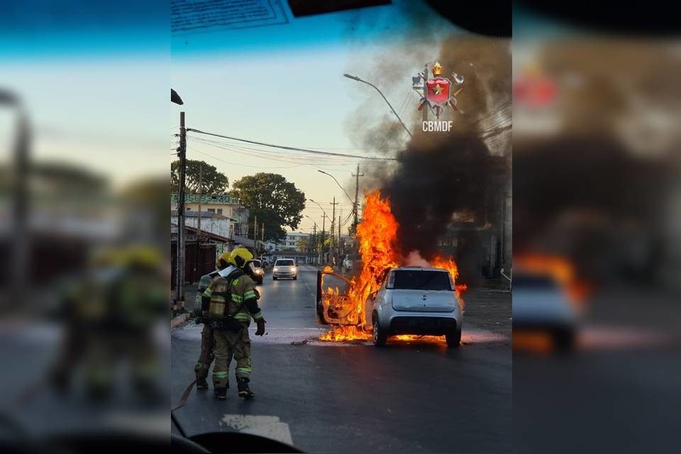 De acordo com o Corpo de Bombeiros Militar do Distrito Federal (CBMDF), neste momento, ele saiu do carro e ligou para a corporação, que fez o atendimento.