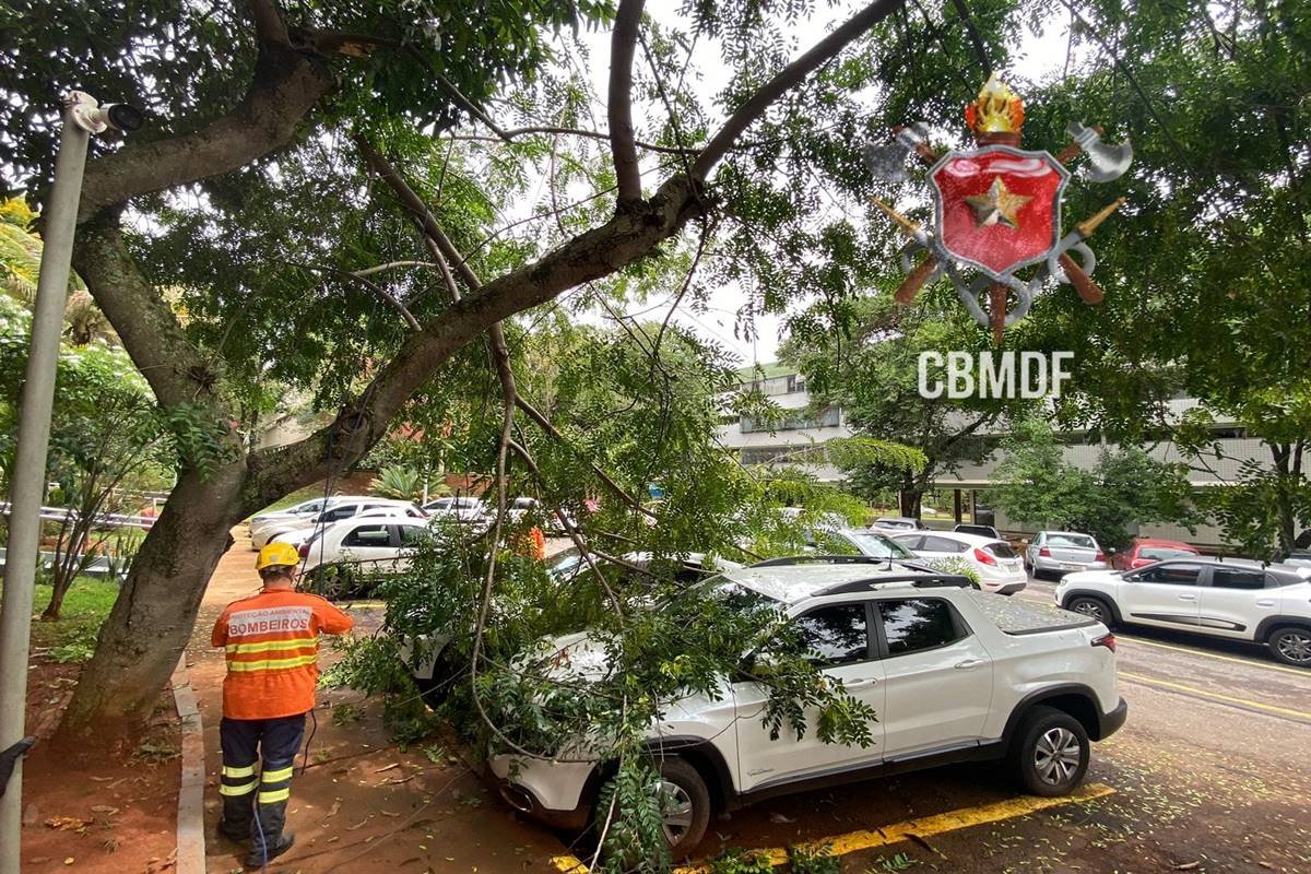 A corporação informou que foi acionada para a ocorrência por volta das 10h30. Os galhos caíram sobre dois veículos que estavam parados no estacionamento do Bloco A da quadra.